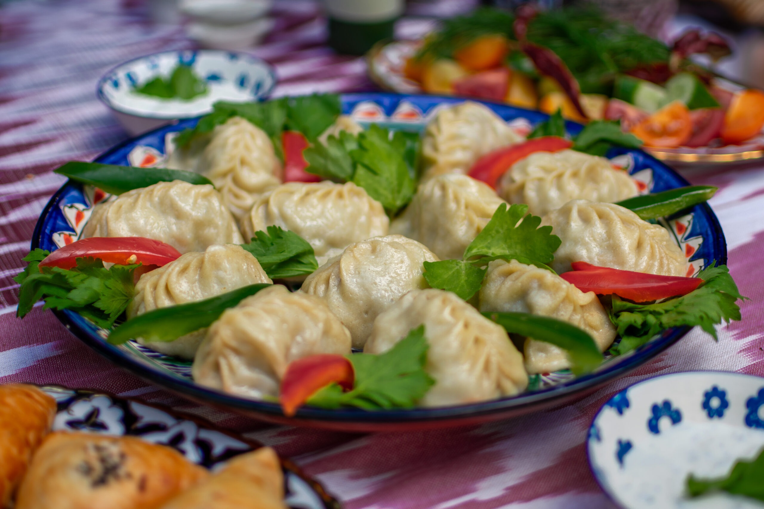 - Manty — raviolis vapeur, pâte maison, bœuf, oignons, épices.