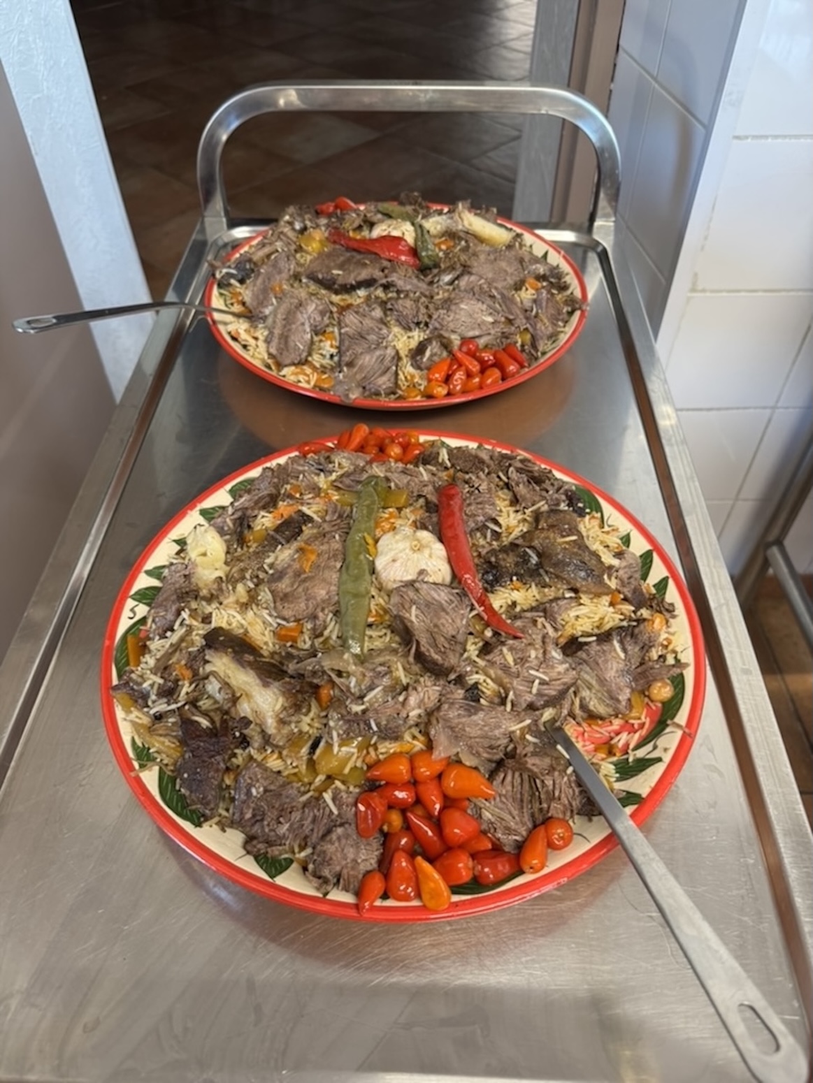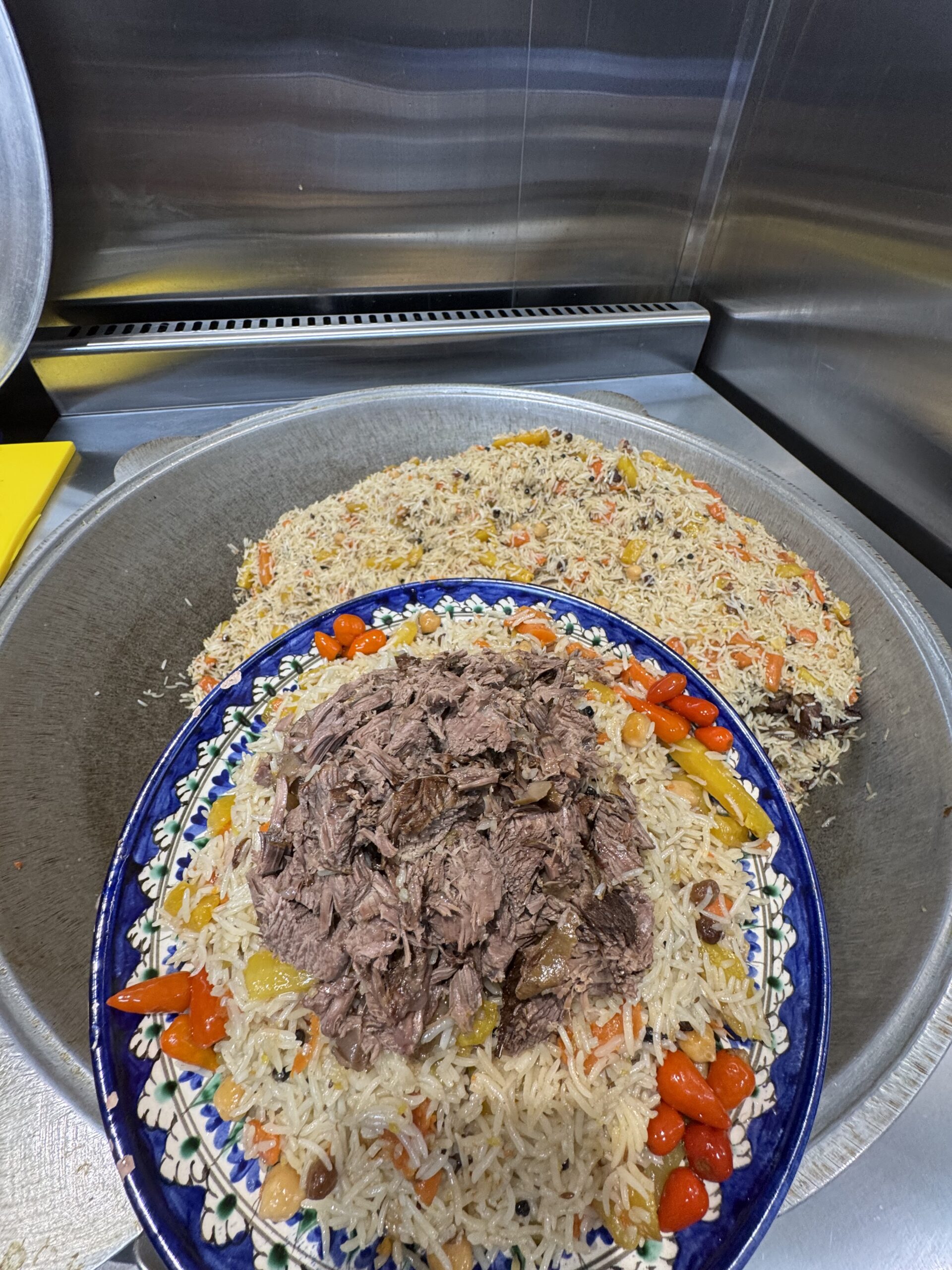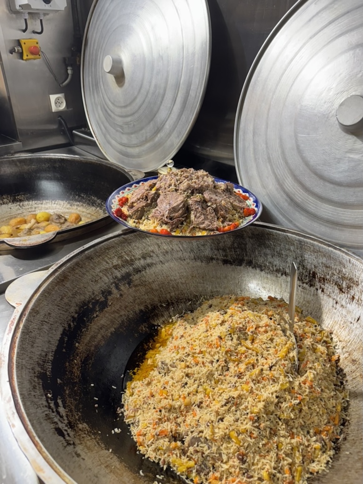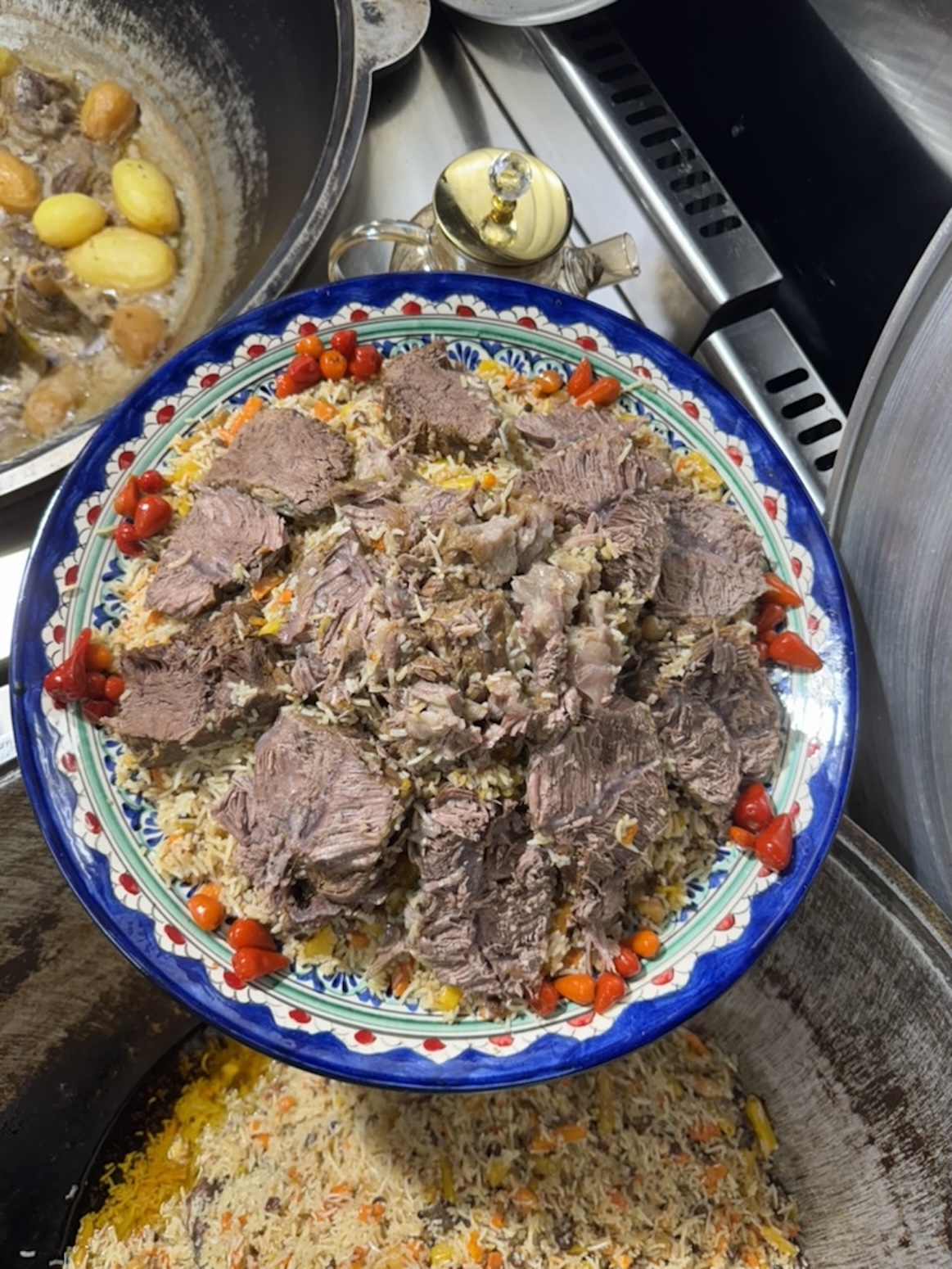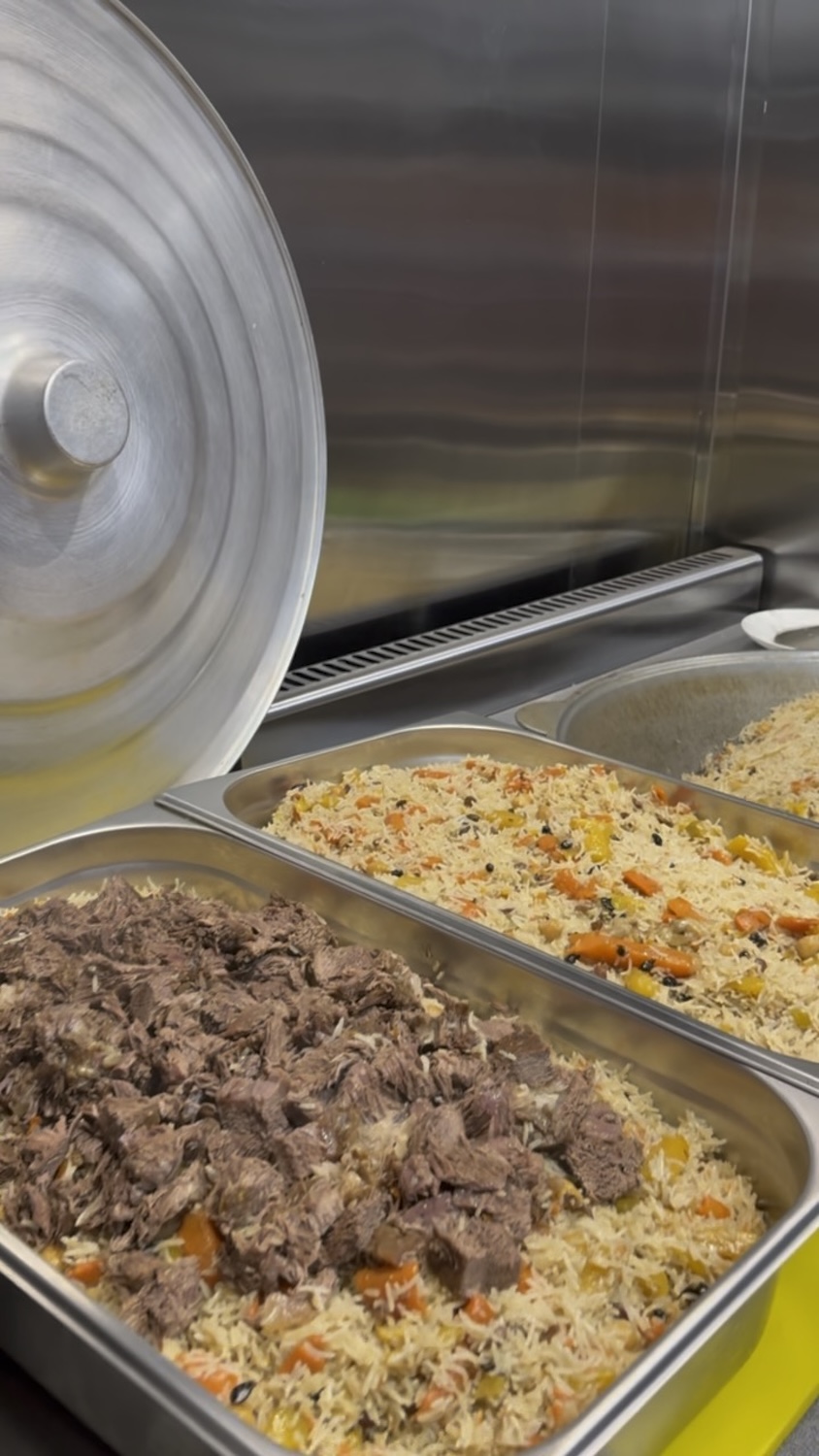 Offrez à vos invités bien plus qu’un repas : un show culinaire autour du Plov au kazan (feu ouvert), préparé par nos Oshpaz (chefs spécialistes). Cuisine 100% fait maison, ingrédients frais du jour, viande Halal (option AVS possible).